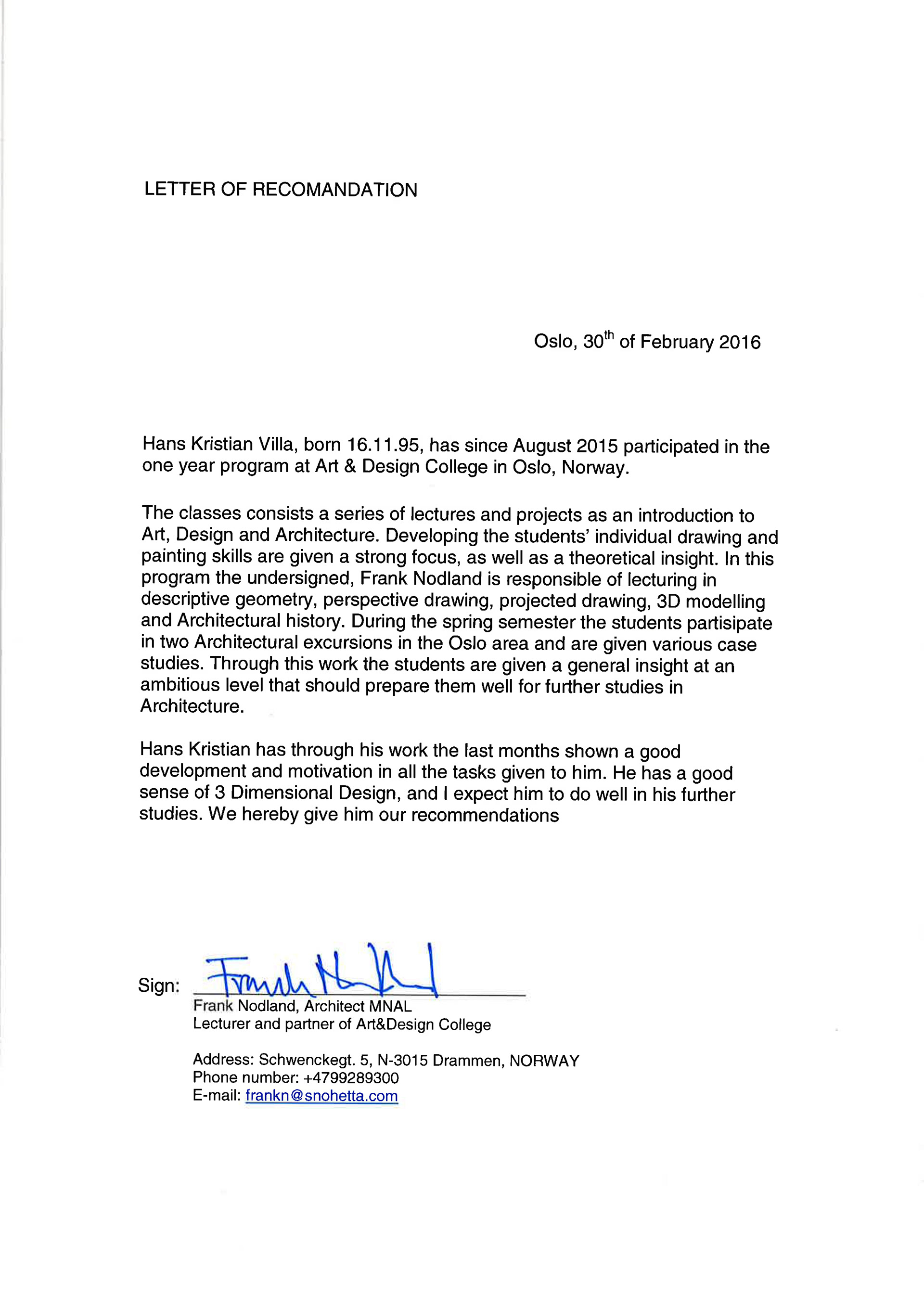 LETTERS OF RECOMMENDATION